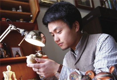 项哲青给蒸汽朋克带来的另一种可能,在这样一个世界中,他亦完成了或许现实中未能提起勇气的环游,并将正能量传递给所有内心还住着个孩子的大人。 蒸汽朋克=怀旧+机械+非主流? 走进项哲青展示手作玩偶成品的空间,满场灯亮起的时候,你一定会和我一样惊叹于这个暗金、华丽又复古的“蒸汽工厂”。 “蒸汽朋克”这个词首先映入脑海,成为标记他和出自他手的玩偶们所属于的范畴。蒸汽朋克可以被简单定义为维多利亚时代的风格加上蒸汽驱动的现代科技的世界观,作品往往依靠某种假设的新技术,如通过新能源、新机械、新材料、新交通工具等方式,展现一个平行于19世纪西方的架空世界,努力营造它的虚构和怀旧等特点。作为一门渐渐兴起的小众艺术派别,蒸汽朋克风的机器美学近年来在美工布景、动画等领域尤为展现了它在精细做工上的特点:如《机器人9号》中的主角小人们几乎全由拉链、纽扣、别针、麻布头组成,双眼是古铜味的蒸汽朋克眼镜,庞大怪物在近景中的金属材质和传动结构一览无余……繁复的管线,旋转的齿轮,很多部件可以说是无意义的,为美观而好看,倒也符合如今“颜时代”的标准,却也常常被贴上叛逆、边缘等非主流的标签。 项哲青在大学时通过杂志迷恋上了这种风格。他还喜欢昆汀的电影,近期想去看蒂姆·伯顿在上海的展览。蒸汽朋克、美式西部风的复古、诡谲的异想世界……他将钟爱过的这种种元素都融入到玩偶的创作中。然而,只需再一眼,你就会发现,在那看似硬派的外表下,其实暗藏着一个反差萌的世界。 在脑海中环游世界 项哲青创作过一个12生肖系列,动物们生活在一个村庄或城市里,每天围绕着理发店、饭店、酒吧、居所、街道,发生了一系列生活化的诙谐故事。意在表现“每个平凡人物的小故事”,有人喜欢追求梦想,有人喜欢轰轰烈烈,有人喜欢安逸恬淡:马先生是一个梦想着成为飞行员的马桶修理工;羊先生是一个古板的理发师,有7套一模一样的衣服,信奉“不变也是一种美”;鼠先生曾经与父亲一起偷酒的回忆还历历在目,现在他们有了自己的酒窖,却找不回当时美好的感觉,有了些成长的烦恼…… 项哲青为每一系列作品的人物都设定了完整的性格与故事,像导演为心爱的角色写一份长长的人物小传。创作者对被创造物而言不是高高在上的神,而是平等对话的朋友。甚至还在一个房间里专门挂了一幅巨大的“世界观地图”,“出场人物”间的故事互相交织,未来某一天,系列与系列间人物的相遇也未可知。人物设定的标准或许是出于“每个人心里都有个没长大的小孩,长大后随着生活的琐碎被抹去了”的那份童心,或许是出于自己内心的投射。 小时候的项哲青就喜欢做手工:“觉得学校两栋楼之间应该建一个连廊,就做了个模型,校方后来就真的造了个连廊。”一路学画画、学雕塑,毕业后“顺理成章”做了原型师,进入为《刺客信条》做手办模型的公司,照着图纸做越拟真越好的模型。 终于有一天,盘踞在内心“想做的是创造”的念头让他辞了职。独立创作的第一件作品就在玩偶主题论坛“兵人在线”上一下子卖了200个,不少当时的忠粉追随至今。 那件“兔子先生”或许就是真实的自己的镜像:“金牛座安于现状懒得改变。这只兔子鼓起勇气想去环游世界,但母亲担心它,飞机坠机,火车脱轨,它就准备坐着跳跳板去环游世界。”代表自己属相的兔子是项哲青最喜欢的,他还创作过一只幻想着鼓起腮帮吹气就能飞上天去的气球兔,据说是女生最迷的一款。 一反阴暗、暴力的既定印象,萌趣与温暖,是项哲青给蒸汽朋克带来的另一种可能,在这样一个世界中,他亦完成了或许现实中未能提起勇气的环游,并将正能量传递给所有内心还住着个孩子的大人。 只爱minisize的雕塑家 大学填志愿时本来想学服装设计,母亲觉得毕业了难找工作,他就改报了南京艺术学院的雕塑系——明明听上去还是很“高冷”。以为是西方大块面的石雕?其实他更爱“捏泥人”!一两个月面对着同一个人体模型会让项哲青抓狂,他总是在一旁“不务正业”偷偷雕些只有几十厘米、却比大型人像雕塑多花一倍时间的手办模型,包括眼耳口鼻、脸上的表情、身上的行头小摆件,到最后老师竟也宽容默许了这个天生玩具迷的执念。如今“蒸汽工厂”里的玩偶们也大致可以归为1/6关节可动人形和Q版玩偶两种类型。 并不是第一次接触到热爱蒸汽朋克的模型控,在这种风格的拼凑美学中,需要大量裸露的机械、齿轮、管道,因此部分人会选择收集旧零件进行创作。项哲青则认为:“旧零件是现成的,纹理和我想要创作的形象或许会不搭。”于是,在他的作品中,构思、画草图、用油泥进行雕塑、用树脂翻模再进行修改等成型、上色过后旧化、着装等步骤全部由手工雕塑完成,从前到后最快也要3-4个月的时间。 尤其是为玩偶着装的部分,可说是把他画画和做服装设计这两个未完成的梦想都顺带着实现了。他专门学习了裁衣制鞋,亲自设计、打版、找工厂做大货、一件件给玩偶试穿再调整……复古范十足的衣服、鞋履、箱包、眼镜,项哲青对材料都有很高的要求,曾经跑遍大小市场,也曾为了找到合适的油泥进行雕塑,去试过一些比较贵的国外材料,因草图之后的打型环节是最关键的:“将精雕油泥加热软化,然后捏出作品的大致造型,听起来简单的这一步
