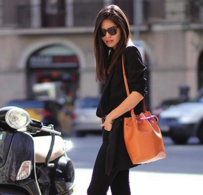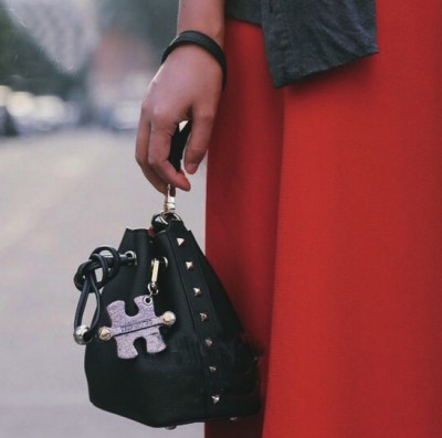 水桶包的可塑性其实非常强,耐得住低调,也hold住个性。与个性界的代表铆钉的结合,丝毫没有违和感。不过,铆钉的金属感,倒是给水桶包带来了新的感觉。配上铆钉装饰的水桶包,在温润中又多了一种力量,女性的刚柔并济皆在其中。