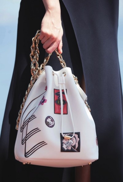 从手拎式到肩背式,不但款式越来越和流行时尚相搭,在包的纹饰上,也多有变化。比如,加入了现代的艺术元素、双色变化设计或者贴上波普图案。包的肩带也越来越变得轻盈花巧。链式包带,在水桶包的低调上加入一些金属感,现代个性一目了然。