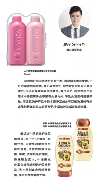 这套旅行装非常适合短期出差、旅游随身携带使用。它针对染烫损伤发质,修护染烫损伤,给秀发补给充足滋养及弹力,抚平毛躁并牢牢锁住着色,减少分叉。研究发现生活用水中的钙离子会积聚在头发内外,导致头发变得脆硬干枯,而这款洗护产品中的水源净活成分可以在洗发时有效去除积聚在头发上的钙离子,令后续护发成分充分渗透。 最近这个新的洗护发品牌很火,找了个“小鲜肉”来做代言。这款牛油果润损伤修护系列,洗发水的泡沫丰富、绵密,洗完后头发蓬松、香味轻甜宜人。牛油果成分富含维他命E修护受损秀发;乳木果则富含天然营养脂,能带给秀发健康生机。