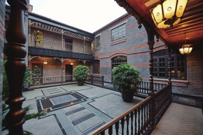 为了再现老洋楼的晚清风韵,老洋楼整体的内部装修摈弃繁琐,突出轻灵、雅致的新古典中式设计概念,以严谨的结构、考究的用料、简朴而对称的形式展现出恢弘高雅的文化韵味。珍稀红木的屋顶包梁,雕刻不同花纹的梁下棹木,造型优美的复古石材家具、雕饰精细的铜质扶栏等细节,无不散发着优雅高贵的上海滩老建筑韵味。当我们站在老建筑二楼的露台上,苏州河迤逦美景尽收眼底,让人感慨时空和岁月赋予它的故事,感慨历代经手之人的众志成城。