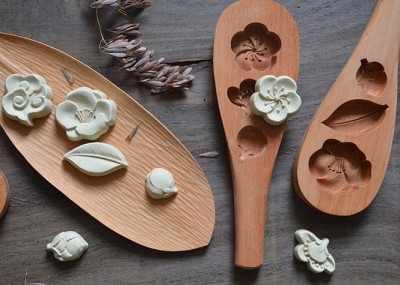 如暖阳衬托下的春茶,如骄阳盛放下的夏荷,如微风轻拂下的秋菊,如寒风凛冽中的冬梅。将春茶、夏荷、秋菊、冬梅雕刻在木制模具中,是艺术也是美食形状,透过糕点模具吐露着芬芳。