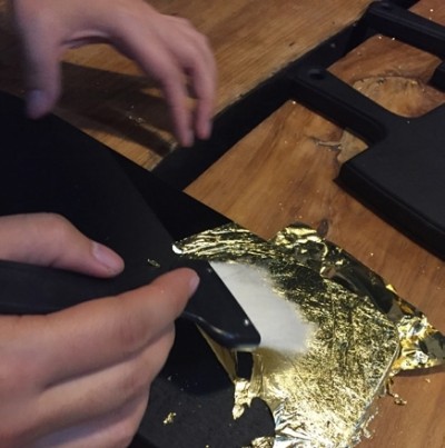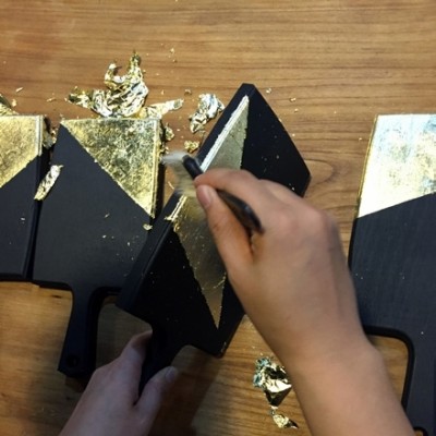 日本的金泽县,地如其名,是一个与“金”渊源甚深的地方。这里金矿资源丰富,或许可以被称为一座“金箔之都”。来到这里,最大的新奇感大约来自于食物,金箔冰淇淋、金箔咖啡、金箔巧克力。将金箔加持到普通的食物上,多少都让人觉得不可思议,却又道不出,究竟是金箔让食物变得富丽堂皇,还是食物让金箔脱胎换骨。不过,这却提供了另一条路径。与其他传统的手工艺一样,失去特定受众的金箔工艺,如何摆脱式微的前景,就取决于它如何“出人意料”。 比如,金箔的手作工艺,就是让一件普通物品华丽转身的一个过程——设计构图,按照构图在相应的位置涂上专用的胶水,稍等上一段时间,再覆上一层金箔,用手按压平整,随后用刷子去除多余的部分,并进行细节的处理,一件简单的手作金箔装饰便完成了。在体验之前,未曾想到金箔手作的工艺可以如此简便,毕竟提及“金”,总是充满了富贵与奢华感,显得华丽而繁复,与寻常生活隔着遥远的距离,让人不自觉地就敬而远之。不过,步骤虽然简单,心思却全花在了设计构图上,如何搭配色彩,选择何种材质,构思何种图案,才能使金箔保留其华丽张扬的个性,却又不流于传统俗套,能够符合现代的审美,又能表达内心的想法,就成了金箔手作的重中之重。正如场域艺术家Megan Chen所说:“金箔是一个非常古老的技艺,一直被用于传统的表达,它需要被重新定义。” 对于本身从事商业空间设计的Megan Chen来说,开设手工课程的初衷本就与传统的手工艺人不同:“空间中除了一些高大上的东西,也要制作一些与生活相关的细节,这些细节能够让体验者感到幸福。”为了增强空间的体验感,所以在其中开设了手工课程,选择金箔手作的原因,是因为金箔既神秘、有趣,又具有极大的可塑性。在开设课程之前,Megan Chen常常要花上月余的时间,来研究课程的内容,如何简化步骤,让学员能够在课程中获得最大的成就感。因而除去教授技艺本身,Megan Chen的手作课程不愿用太多条条框框的步骤让学员们按部就班,局限思维,而是留有更多的余地,让体验者能够与材质充分接触,了解一项材质的特性与材质背后的故事,来体验经验与环境等种种因素之间的联结,也能从完成一样作品中,获得成就感。对于手作来说,自己的经验和审美能够主宰一切,在短短的时间内,做出不错的手作作品,在“玩”中体验对于生活的掌控感。 Megan Chen的金箔手作课程的另一个关键词,是“复刻美好”。生活中的美好往往是短暂的一瞬间,它可以是气味,或只是一种感觉,无色无形,却能让人有片刻的幸福感。金箔手作或许是这种美好的“复刻”,但却不是简单的重复,在复刻的过程中,也会产生新的创意灵感,与对生活的新的理解。“按部就班并不能创造幸福的经验,受众自己是创作者。”