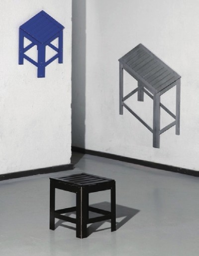 这件妙趣横生的艺术品,到底是画布上画了椅子?还是墙面上靠着一把椅子?木材和铝座组成的画框支撑着印有图案的弹性帆布,而将这幅“画”倚靠在墙上就能真正安坐。同时这款画布上的椅子,还拥有三种不同的类型——单人沙发、双人沙发和椅子。