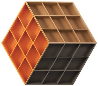 如果不想自己家的墙上一片空白,或者想给身边零散的小东西找个安置地,那么置物架是个不错的选择。这款书架灵感来源于三阶魔方,3个菱形按照不同的方向固定而成,一眼看上去仿佛眼前放置了一个立体魔方。