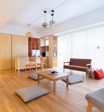 候诊室的设计,更像日式的和室。原木色的木质地板搭配暖色系沙发和软垫,让就诊者感觉是在一起聊天小聚,而不是在等候就诊。