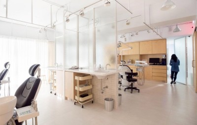 这一间诊所的设计,同样是想将轻松日常感觉带给就诊者。设计师的目标就是“设计一间让患者不再害怕去看病的诊所”。不同于极橙诊所拥有的明亮与活泼的色彩,台湾的乐心牙医诊所则是将原木色运用在整个空间之中,沿街的地理位置让诊所,常常沐浴在阳光之中,和温暖的阳光和原木色搭配,更是设计师传递给患者的一种安全感。