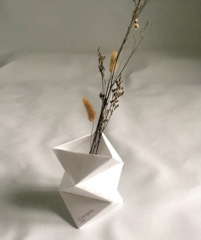 生活总需要我们去妆点才能精致,像展开的折纸艺术品一般的花瓶加上植物的多彩颜色。几何美学妆点了单调的生活。这是用纸创作的好玩有趣的家居类装饰品。