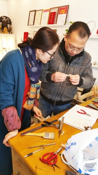 工作室里平时有许多来动手做首饰的学员,原本我以为大部分只是因为爱好而来,做几件首饰给自己佩戴而已,因为要把金工首饰当成事业来做实属不易,不仅需要来自内外的各种能力和动力,最重要的还需有持之以恒的职业精神,以及今天常说的匠心。然而我想错了,他们各自除了原本的工作实力,在学习金工首饰的效率上也是大大出乎我的意料,而且有自己独特的思考和思路构架,让我佩服不已。来自无锡的李竞就是其中一位。 “从陶瓷艺术、琉璃艺术再到金工首饰艺术,大学毕业后这三年里,我不断学习和创作,还创立‘净善竞美’手工艺术品牌。从一个手工艺术的爱好者、学习者、设计者,再到一个手工艺术的经营者,每一次身份的蜕变也都是我不断反思和探索的过程。有时,我会从旁观者的角度来观察自己的学习、重审我对手工艺术的了解和认识,这时我会更加敬佩那些手工艺术家恒久不变的执着精神。我也会想我能不能取长补短、兼容并蓄,让不同材质的统一更趋于完美?” 李竞就是这样一位积极上进的创业者。她创业的现状如何? 2016年10月19日,在“麦客杯”全国大学生创新创业大赛中,李竞经营的“净善竞美”品牌毫无悬念地获得了一等奖,这便是最好的答案。 李竞说“在常人眼里,市场与流行有关,与思想无关”,而她恰恰不这么认为,“从我们对‘净善竞美’的品牌实施与推广来看,手工更多的时候与思想有关、与跨界有关。每一次思想的碰撞都会出现意想不到的效果和市场热点的引爆,这也得益于我的首饰老师吴二强先生经常给我们灌输的独到见解!”李竞的团队做了很多尝试,比如我看到他们将檀木和瓷片结合成为一款耳坠;将原矿、珍珠与金属的结合成为一款挂件;将紫砂竹节和黄铜的松鼠结合成为一款讨喜的茶宠等等。在这种随意中收获了亲近感和平易精神,带给了观众不同的感受。在市场实践中,李竞感受到了市场的活力,她认为活力也来自于认真且敢于突破的匠人精神,而经营与作品创作一样需要一颗匠心,匠心在做很多事情上都是相通的。终于,创作形式与作品材质上的跨界创新也使“净善竞美”获得了市场的认可与赞美,从十一黄金周日均数万业绩的结果来看,他们的探索是成功的。 在匠心相通的包容、创新与跨界实践中,创作思想永远是作品的魂,李竞的品牌又围绕禅意升华创作了各类作品。2015年,他们的第一家专卖店在无锡著名的灵山小镇“拈花湾”这一禅意名胜区开张,一年来取得了不俗的市场成绩。近来,他们计划建设一个以基地为主体,融文化传播者、手工艺术家、消费者各种互动的可持续开放式体验平台,以休闲、度假、手工互动体验为主的开放式艺术村。项目位于龙池山风景区旁,周围环境优美,交通便利。目前已收购8家农户近2000平方房屋建筑作为开发基地,而且已经进入整体设计规划。 匠心相通,我明白了李竞能够不知疲倦坚持做事的源动力。