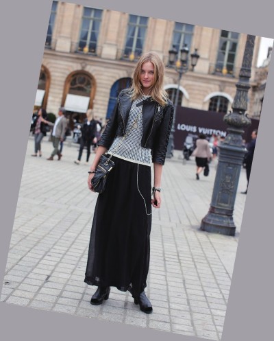 皮衣虽然挡风,但是不够保暖,所以,现在穿,刚刚好。机车皮衣无疑是最百搭的一款,硬朗中不乏一点点的柔情,搭配裤子或者裙子,都完美。