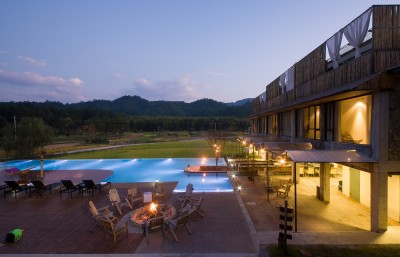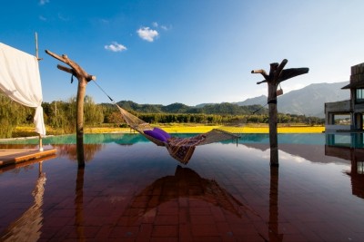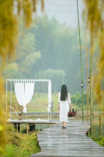 吕鲲鹏说,自己是一个在精神与世俗间挣扎的设计师,用情怀建了悦庭楠舍,装进了自己的精神,与爱人一起去守望一片土地。 山水田园,近在咫尺 “近涧涓密石,远山映疏木”,南朝诗人谢灵运担任永嘉太守时,在楠溪江边留下了不少脍炙人口的诗篇。而如今,楠溪江边的泰石村竟然隐匿着这样一处田园秘境,怕是许多人无从想见的。 这是一栋名叫“悦庭楠舍”的田园小屋,被竹子和绿植包裹着,与楠溪江这幅山水长卷浑然一体。楠舍的屋前是一片幽兰的泳池,栈道尽头径直伸向金黄色的稻田深处,背后是层峦起伏的葱翠山岭,这里是设计师吕鲲鹏与太太苗苗安顿在楠溪江畔的理想生活居所。 身为商业建筑设计师的吕鲲鹏,一个正宗的东北硬汉,多年在温州打拼,与太太苗苗相识,成了一个地地道道的“温州女婿”。一对璧人,爱旅行,更爱生活,他们割舍不下楠溪江的“耕读文化”,对谢灵运笔下古朴自然的山水田园如痴如醉。 悦庭楠舍的设计初衷源于吕鲲鹏和太太的一次清迈旅行。在那里满眼尽是田园风光,度假村就藏在田园深处,很慵懒,却又异常精致。金黄色的稻田铺满田野,客人们骑着摩托车在田头穿行,走走停停。“那里的酒店体量很小,但是与自然妥帖地结合,相得益彰。”回到温州,吕鲲鹏动了念想,楠溪江的美景绝不输给清迈半步,甚至有过之而不不及。 设计之初,吕鲲鹏先描摹了一种生活状态:田园秘境,享受慵懒的慢生活。而在南朝诗人谢灵运笔下,就是“清旦索幽异,放舟越垧郊”的山水长卷。楠溪江还是“耕读文化”的发源地,远离喧嚣、寄情山水、陶情冶性的耕读生活也是都市人返璞归真的精神寄托。“我们向往田园生活,希望周围被自然美景包围,最好乡村里还有个大泳池,属于自己的泳池,虽然不经常游泳,光看看蓝色,心情也豁然开朗。” 建成后的楠舍果然有一片偌大蔚蓝的泳池,而两处VILLA别墅,房间内还自带私人泳池。“70后、80后在这里可以找到一些儿时的回忆。而对于85后、90后来说,什么样的乡村生活可以更吸引到他们?”吕鲲鹏动足了脑筋。这个理想家园更类似于现在时髦的“野奢酒店”。无边泳池、 露天电影、月夜篝火、池畔吧台,都市人能想到的时髦玩法,在田头里另类呈现。 正值秋季,稻田收割,就在金黄色的稻草边长桌设宴,来一次高大上的欧式晚宴;炎炎夏日,草长莺飞,无边泳池的烂漫婚礼,配合吧台上的民谣吉他,唱出了年轻人自由激荡的灵魂。吕鲲鹏骨子里流淌着“浪漫”的血液,他和太太写就的爱情童话,也把浪漫的因子肆意播撒到来到这里的客人身上。 与自然无缝衔接 吕鲲鹏通过1:1的公共空间和房间比例来舒朗整个布局,让楠舍与自然无缝衔接。 当你站在通向稻田的木栈道上,回头望向群山掩映的楠舍,被竹子、树木、花草围绕的楠舍,从外观上并不出挑,甚至说有些不起眼,就感觉它和自然山水从不是割裂的。也许,它更符合吕鲲鹏自然主义的设计理念。 因为过于贴近自然,以至于常常有客人都到楠舍大门口了,却不识庐山真面目。楠舍的外立面并不起眼,被竹子和白墙包围,没有任何“惊艳”之色。管家有时会建议:“是否可以换一个更醒目气派的招牌?”吕鲲鹏不应允。他喜欢这种先抑后扬,喜欢楠舍于不精心中带给人的惊艳。“它不需要高大上的仰视,只需要平和的直视。” 楠舍的庭院手法,植物栽培更加随意。许多可爱的绿植被种在残瓦破罐里、枯木里,不经意间成为自然里的一草一木,人们欣喜地感受自然天地之意,进而又把绿意收进视野之内。楠舍所在的建筑原本是一座被弃用的休养院,修养院里原来的亭子、假山、灌木、围栏,繁复的累赘统统拆除。吕鲲鹏让房间里看到的视野自然打开,屏蔽那些人造取景,而让远山、竹林、稻田那些真正的自然成为推窗望去的“风景”。 拙朴型·淡泊心 与其说楠舍是“设计酒店”,还不如说是“再生酒店”。设计师把回收来的楼板石、房基石、枕木、老房梁等,找当地的老工匠,手工一点点打造,耗时两年建造完成。这些常见的材料如何更好地归纳?吕鲲鹏更倾向于简约主义,裸露的红砖、素水泥地面、可再生的竹子、老木料、楠溪江的鹅卵石,没有过度装潢的白墙,还建筑于原有的质感。 使用回收木、回收砖,时间跨度很长,材质的肌理更为自然。新砌的砖头和老砖墙相连,看起来有点儿违和,有些过于硬朗。于是,吕鲲鹏故意敲掉一部分新墙的白墙,露出里头的红砖,让现代和自然在当下跨界呈现。 “去装饰化”、“去工业化”是楠舍的设计理念。吕鲲鹏说:“改革开放以来,曾经一度流行的装潢风格是盖掉原来的基础,石膏板吊顶、使用气派的大理石、装各种射灯。各种流光溢彩,无形中也给人造成了某种压力。城市里的装潢理念似乎不把原有的建筑毛坯覆盖掉,就不算装修。而在乡下田园里,更应该体现返璞归真,原始的自然状态。我们尽量做到裸露,使用建筑本身的材料作为装饰;但是这种裸露对工业材料的使用和处理要求会更加严格。 这些原生态的材料,会让你在室内就能感受到大自然的气息,而不再像在都市里,被一个水泥盒子完全包裹住。在亲近自然的环境之下,人可以全身心放松,那些掩藏在内心深处真实的部分也会外流。” 这出于儿时渐行渐远的回忆,吕鲲鹏出生在大东北,典型东北工业城市的家属大院里。工厂的宿舍建于城市边缘。他清晰记得,小时候父亲