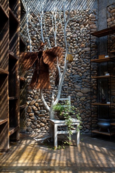 与其说楠舍是“设计酒店”,还不如说是“再生酒店”。设计师把回收来的楼板石、房基石、枕木、老房梁等,找当地的老工匠,手工一点点打造,耗时两年建造完成。这些常见的材料如何更好地归纳?吕鲲鹏更倾向于简约主义,裸露的红砖、素水泥地面、可再生的竹子、老木料、楠溪江的鹅卵石,没有过度装潢的白墙,还建筑于原有的质感。