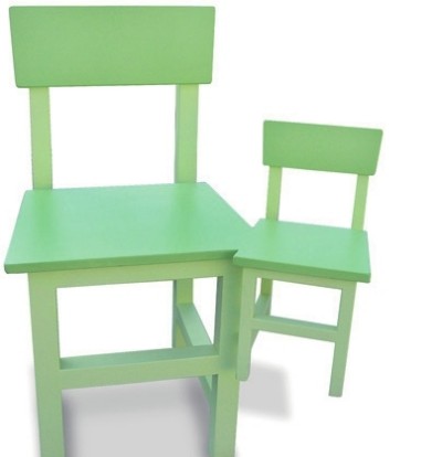 两个椅子牢牢地固定在一起,更加增强了彼此紧挨的亲密感。就像孩子和父母之间,总是血脉相连,互依互存一般,两把椅子一大一小,相辅相成,紧密相连。