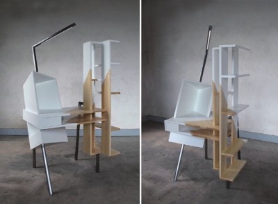 这款复合式的桌椅并不是设计师按照既定的设计图稿所设计的,即兴的创作在它身上一览无余。复合式组合桌,是对起居室桌子的功能性提出的质疑,将静态的桌椅转换成动态的形式。