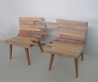 它与断裂式家具属于同一系列,三张孪生椅子被“撕裂”开之后,设计师将“撕裂”的静止状态表现出来。这个作品所要呈现的就是作为家具的个体,就像人一样具有不同的个性和感情诉求。