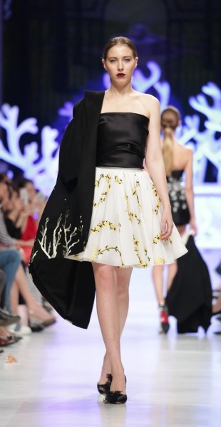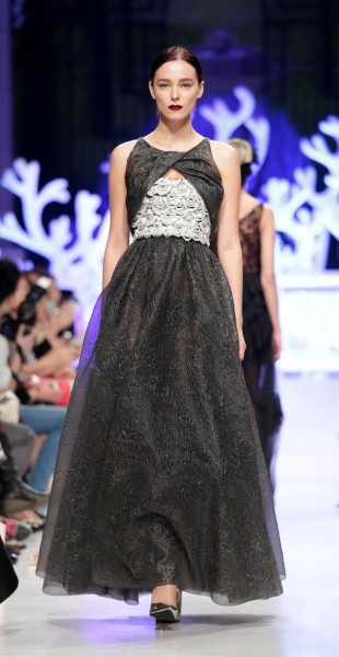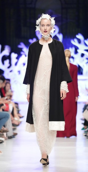 ADOR ITZ高定系列的灵感来自于Nereid海之女神,唯美至极,模特犹如美人鱼一般,在宾客面前游刃有余地穿梭,勾勒出冬日美丽神秘的海底世界…… 高级定制的基因是奢侈,ADORITZ弘扬其精髓,采用欧洲进口的高贵定位提花、唯美珠花蕾丝、珍贵骆马毛,将手工艺完美呈现,原材料包含真玛瑙、真水晶、真青金石绿松石、真宝石、真碧玺石,还有真的珍珠、贝壳、羽毛、施华洛世奇水钻等等,精美的刺绣,纯手工串珠,每一处细节都精雕细琢。据悉,所有刺绣作品皆由苏州苏绣基地里绣功最好的绣娘所完成。设计团队先画出原创画稿,剪出花型在胚样上定位,再结合人体美学立裁制版,送往苏绣基地,随后,刺绣半成品再运往上海总部进行后期手工制作。 设计师总监Vivi介绍,始于对大海的理解,所以唯美的珊瑚、贝壳、珍珠、水母等元素被设计师融入了华服之上,以极其重工的手工艺做法呈现出来。时装是一念之间的产物,转瞬即逝,但手工缝制给予它永恒的灵魂和生命,不难发现实际上中国本土高定产业正在慢慢崛起,特别是手工工艺,在诸多领域已经达到国际高水准,穿在身上的不仅仅是一件艺术品,更饱含万金难寻的设计师创意。