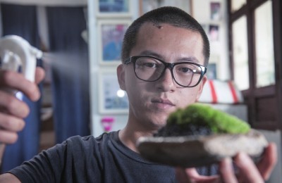 人永远是失去什么才会想要什么。城市里摸爬滚打了些许年后,重新回归花草树木的环境,才会格外珍惜和喜爱。 在杭州郊外的外桐坞,安静的小村庄里,交通并不便利,却藏着一栋让人趋之若鹜的“网红”小绿屋,名叫“植觉”。屋子的内墙外墙几乎都爬满藤蔓,在村庄内显得独树一帜。但三年前,这间院子还是空空荡荡的,直到搬来了热爱花花草草的主人潘锐,大家都喜欢叫他“植觉先生”。 草木本无意,荣枯自有时 植觉的小院子不足20平方米,却是一个藏龙卧虎的宝库。在蔓藤掩映下,开着一扇小铁门,走进院内,无处不是植物,层层叠叠。爬山虎、紫藤、凌霄、常春藤、油麻、无花果、木贼、万年草、玛格丽、菖蒲……还有几十多种苔藓都栖身于此。 满院虽是看似不起眼的绿植,但你可能想象不到,这里曾有盆景孤品有人开价30万……不过,没有缘分,再贵的价格,潘锐也选择不卖,最后却送给了一位朋友,大概也就是因为“有缘”而已。 潘锐并非本地人,来到杭州外桐坞也是因缘际会。他从小在农村长大,因为靠着山,总是与植物作伴。13岁时,他就离开了大山,一个人到陌生的城市打工。看过店,帮过厨,理过发,送过货……拿着几百块的工资,根本不够养活自己。偶然发现杭州有一家花店正在招人,包吃住还可以拿到300块的工资,因为能和花花草草打交道,犹如回到家乡的熟悉感觉,于是潘锐接下了这份工,并开始了和植物再也剪不断的“纠葛”。 但理想和现实总难免存在差距。直到后来,潘锐度过了一段无忧无虑却也甚是无聊的工作经历——每天睡到下午一两点起床,吃完午餐,三点钟才开始上班,没有太多的工作要做,在公司上网聊天抽烟,但可以拿到几十万的年薪。很多人觉得,这样的生活不能再赞,然而在潘锐看来,自己正在慢慢变成一个废人。 在那段迷茫又崩溃的日子里,一次不经意的一瞥,留意到自己曾几何时养的一盆苔藓,才让他濒临崩溃的状态找到了突破口。苔藓之于潘锐,就像是一把打开内心枷锁的钥匙。于是,潘锐开始查阅大量相关资料,并四处走访,采集苔藓样本回来进行养殖。没有养护经验,没有借鉴参考,他只能在不停的试验和失败中,自己总结经验,慢慢摸索。大约经过了一年的自我打磨,潘锐总算找到一些门道。 潘锐自己摸索出来的苔藓作品,意外得到了很多人喜欢,一个朋友还愿意投资他,这才促成了“植觉”。最终,又让潘锐找到了外桐坞77号这栋乡间小院,重新找回了他对植物的归属感,于是,他在这里落脚,在这里静心培育一草一木。 凭植觉处事,不争不抢 潘锐说,人永远是失去什么才会想要什么。小时候在农村里长大,看惯了花草树木,并没有什么特殊的感情,反倒是在城市里摸爬滚打了些许年后,重新回归这样的环境,才会格外珍惜和喜爱。 植觉的主角显然是苔藓,正是跟苔藓相处的过程中,让潘锐发现,着急是无济于事的,跟植物在一起就必须耐心地陪着它们日复一日,年复一年,等着它们慢慢成长。看着它们慢慢变化,像是一种修心修行的过程。因此,植觉的Slogan“不争,不抢”就是潘锐长期与苔藓相处而得出的感悟。在他看来,苔藓在自然界中,一直用最谦卑的方式影响着世界,也用它自己的姿态来过自己的生活。“养苔就像养心,是一个漫长过程。”潘锐采来的苔藓样本,要在大棚里养足两年后,才能带回小院。铲子,剪刀,镊子,勺子,一件苔藓作品,需经多次修剪才能成型。 当初,着手打造植觉的时候,潘锐并没有定下什么明确的目标,只是让它顺其自然的发展。但“不争,不抢”不代表不作为,只是在对待植物上会更细心、更耐心。现在的潘锐,一门心思专注做自己的事情,不会被外界的人和事打乱自己的节奏,“生活就像是一株被培育的植物,你每天的付出看似重复又微小,但积少成多,过了三年五载,它就会像植物一样,长出自己的姿态和风格”。 “不争,不抢”的植觉触动了很多人的心,经过潘锐的用心打理,不知不觉中,植觉圈了不少粉丝,成了“网红”,这个原本安静的小院子也早就变成了当地的“热门景点”。来来往往的人越来越多,身份多种多样,目的也各不相同。虽然潘锐的性格有傲娇的一面,但对待志同道合的朋友,他还是热情好客的。潘锐曾经理想化地希望,这里能成为所有植物爱好者的后花园,以植会友。所以,曾经有朋友、客人来了,看到喜欢的植物,都可以带走。“我就喜欢像这样,一个人静静地待着,做出更多美好的苔和植物分享给大家。”潘锐在屋里放着一个盒子,你可以随意的往里面塞一点钱,或是直接将植物拿回家,他都不会介意。 只是,这样的做法,吸引来的不仅是真正喜爱的植物的人,更招来不少贪小便宜的人。潘锐这才发现,并没有这么做的必要,于是才终止了这种乌托邦式的赠予。但真正热爱植物的人并不会受此影响,他们依旧会来找潘锐喝茶聊天,聊聊生活谈谈苔藓…… 现在,全凭心情处事的潘锐,没有包袱没有压力。潘锐直言,虽然自己对植物非常有耐心,但除此之外,都没有什么耐心。所以,处理不好人际关系,也懒得搭理人,比较自我。“人生匆匆几十载,最重要的就是“畅快”二字。喜欢的人就交往,不喜欢的人就随他去了。”这是潘锐的处事之道,能够摆脱俗事,安心在此地养花弄草,或许也正因为有这份洒脱。 一切只因热爱 这样的生活仿佛是世外桃源一般,看起来颇叫人艳羡。但潘锐也不是没有心事,他要操心的琐事很
