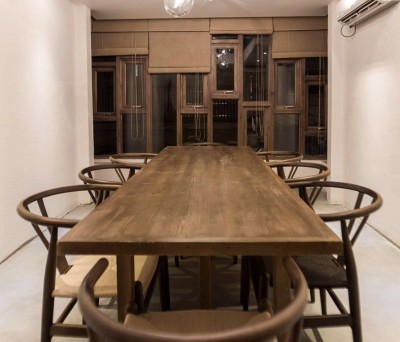 位于北京前门杨梅竹斜街上的一家胡同里的渔芙南餐厅,其前身是由胡同里破旧的两层老宅改建而来,重新改造后依旧是一间仅仅65平方米的小餐厅,但却娓娓道来着它“包罗万象”的独特魅力。整个空间由左太明及其夫人负责方案的设计和实施,这里除了地道的地方料理,更是以成功的改造成为了这条胡同上众多出色创意的成员之一。餐厅的诞生来源于对“吃”的追求,来自南方的鱼渴望在北方的水中寻找到最纯正家乡味道,没有什么比一顿家乡味道的饭更治愈的了。因而左太明夫妇才有了开这间餐厅的想法,希望用设计去改变一个行业原有的印象。 整间餐厅内部空间狭长,宽仅为3米,却不见局促压迫感,一楼的空间大致能容纳20人左右,二层的包间则能容纳8至10人,提供给公司聚餐或者朋友聚会。设计师巧妙地将空间窄长的弊端加以改造利用,通过高低错落的木制框架小窗给自然采光创造最大的可能,另一方面形成一致的视觉印象,简洁合理的设计战胜了改造前空间的缺点,令人眼前一亮。 一层开放的餐饮区,由于空间的窄长,只有八个台位提供给客人。整个空间以黑色为主色调,从餐厅中的各种家具到一楼天花板的木板,都采用了同一色系的木材,保持了视觉上的统一性。而直接从天花板垂下的黑色吊灯,其线条因下垂营造了层高的错觉。二楼的空间最大的特色就是它不同于一楼的木质天花板,而是直接采用天窗的设计,致力于获取最充足的采光,同时也拉高了空间,消除了不可改变的物理特点所带来的逼仄感,抬头所见的天空和大树,和餐厅交相辉映,是一幅独特而自然的风景画。店面虽然很小,但设计师依旧将空间进行了最大的利用。二楼包间外的走廊,同时设计了内嵌式的实木多宝格,上面放置着最地道的坛子菜,将最美的乡味和设计相结合。 QA 生活周刊×左太明 Q:你们的空间是通过改造之前的房屋,有没有结合之前空间的特点?有什么特别的改造吗? A:这间房子之前最大的特点就是房子呈狭长型,作为一间餐厅来说格局非常难用,在合理分布完格局之后,把这种狭长运用在房子临街的建筑窗户上,高低错落的排列使窗户灵动了起来,在天气变暖的季节窗户便可向外开启,既可通风也与室外窄长的街道有了和谐共处的情调。 Q:整个餐饮空间,有哪一处细节设计是让你觉得最满意的地方? A:二层包间的天窗吧,原本的房子破旧不堪,层高也被廉价劣质的彩钢板挤压得很矮。由于北京胡同的特殊性,最终能开一个天窗实属不易。旁边住家的一棵大树伸出来刚好在天窗之上,一年四季,抬头看,一目了然。 Q:对于未来的规划,会想过继续开分店之类的吗?还是会计划开拓其他领域? A:目前正在设计并施工新店,同样是开在北京胡同里的一家店。作为一个设计师而言,设计真的可以改变很多传统行业,我们的衣食住行都需要设计,这不仅仅是“好看”而言,也是我们愿意改变过去迎接更好生活的一种态度。