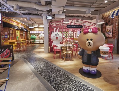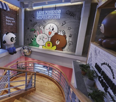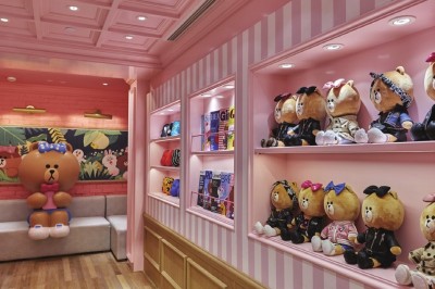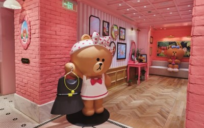 一座年逾古稀的老洋房如何焕发出十来岁少女般的活力?这家LINE FRIENDS CAFÉ & STORE上海的首家CHOCO主题店铺用激萌的卡通形象为秋日的申城增添一抹亮色。 这家超过800平方米的精品店坐落在淮海中路上一幢总高三层楼的老洋房里,外立面被刷成了CHOCO最爱的粉红色,特别出跳,让原本爷爷辈儿的房子一下子恢复了青春活力。这排沿街的老房子,基本上都是楼下开商铺,楼上做住家,所以,一层楼的商铺除了开间大、楼层高之外,也就没有更多的发挥空间了。而LINE FRIENDS CAFÉ & STORE把整幢楼都盘了下来,将这里从头到脚,从外到里,打造成了一个百分百的童话世界。CHOCO作为布朗熊的妹妹,只是一个虚拟的卡通形象,但是游走其间,处处可以感受到CHOCO的气息,让人感觉到她就是一个活生生的时尚达人——爱打扮、爱自拍、爱幻想。所谓文如其人,其实房子又何尝不是如此呢? 除了一楼的贩卖区出售各种相关产品之外,其他区域几乎都是拍拍拍、坐坐坐、吃吃吃、喝喝喝的节奏,无论是从设计上还是气氛上说,这里更加像是一个家,尤其是三间专属于CHOCO、布朗熊和莎莉的房间,在提供更多独立空间的同时也让逛店的趣味性倍增。 一楼的CHOCO房间将所有的少女心承包,拿着粉色手机的CHOCO,正在挂着各种奖章的墙前自拍,无论是对于她敏锐的时尚嗅觉又或是广泛的兴趣爱好的肯定,每一个奖章都是我们时尚达人的成长见证。还有她代表性的一整柜子百变蝴蝶结,以及作为封面女孩上过的杂志……令人不禁感叹和艳羡这位熊小妞的多彩生活。 相较CHOCO房间的可爱亮丽,位于三楼的布朗熊房间则显得低调内敛了许多,却又可以从各种细节体现这位国民男友的卓越品位。还没步入房间便可看到整面的照片墙,在水晶吊灯的映衬之下更显雅致。而房间的整体布置走的是怀旧风格,与其所在的这栋老建筑相得益彰,墙上也是挂着身着维多利亚时期服饰的可妮和骑士布朗熊的照片,置身于其中仿佛穿越时空。从房间里摆放着的拳击手套和各式书籍更可看出布朗熊既能文又能武。 一个转角,就来到了CHOCO的好闺蜜莎莉的房间,房间的布置温馨无比,有超大布朗熊公仔陪伴的舒适沙发和各式影碟让人忍不住想要在这里度过一个惬意的午后,这里的下午茶套餐可是限量供应的,所以更加具有私密性。 店铺内的装饰同样也是无比用心,从复古的理发座椅到古董箱包,都是精心淘来。许多独具设计感的小细节,无论是电影和舞台剧海报,书架上的小说典籍,还是黑胶唱碟的封套,全都将LINE FRIENDS的形象融入到名作之中,而这些脑洞大开的小巧思就等着细心的人去发现了!