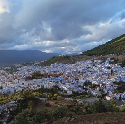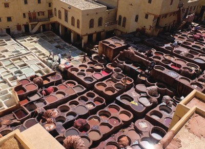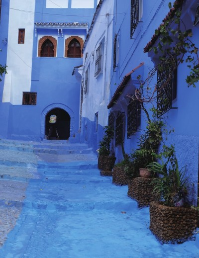 回到城市,一次次回想起那些干瘪的仙人掌,身着长袍裹着头巾的蒙面路人,绵延的赤裸黄土、起伏的无垠沙丘。回想起巍峨雪山、无际平原、蜿蜒公路,回想最辽阔的奔驰,最浪漫的星空,回想一切的热烈和直指人心。 菲斯,活着的天方夜谭 从蓝色的布日卢门进入麦地那,有种穿越千年的感觉。来之前,听朋友说,一定要在菲斯迷一次路,因为这是旅程完美的一部分。 菲斯七转八弯的小路比起马拉喀什,简直是有过之而无不及。有些通道非常窄,大概只容一个瘦子通过。胖一点,就要“卡门”了。 我们找的向导显然对这些路游刃有余,他一会儿带我们拐进菜场,一会儿带我们穿入布料市场,一会儿又来到清真寺。非穆斯林是不可以入内的,但从门口可以看到里面的小庭院和精美的马赛克。穆斯林四到七岁的孩子需要在这里学习可兰经,7岁后到学校学习阿拉伯语和法语。 如果要找菲斯最著名的景点,跟着你的鼻子走就是了。菲斯的皮革制品非常有名,因为污染环境,城里还保留着为数不多的传统皮革染整作坊,准备申请世界文化遗产。 我们登上作坊周围的天台,俯瞰作坊内密密麻麻的大染缸。因为动物皮毛加工时是用鸽子粪和石灰放在白色的缸内浸泡的,鸽子粪可以软化皮革,因为用量大,靠飞来飞去随意留下的鸽子粪显然不够,往往还需要额外购买。因为味道难闻,进去参观前,店主会给大家分发薄荷叶。 染缸里,最昂贵的颜色是黄色,因为这是用藏红花染的。藏红花哎,我们论克买的奢侈补品,他们竟然这样随随便便就投进了染缸。黄色皮革,真的值得拥有啊。其实比起皮茄克,更喜欢他们的皮坐垫套。传统的伊斯兰花纹,美轮美奂,椭圆形的形状折叠起来像一个碗。我们很好奇,那么大的坐垫,里面要填充多少海绵才够呢,店主却大咧咧地说,随便啦,旧衣服、旧报纸,什么都可以塞进去啊,so easy! 舍夫沙万,通往蓝色幻城的门 蓝色有多少种,舍夫沙万便有多少风情。 到舍夫沙万的当天,大雨。当天晚上,竟然升级到了暴雨。 因为住在距离不远的山脚下,蓝色的小城仿佛是镶嵌在酒店的窗框上的风景画。看着雨水中那片湿哒哒的蓝,不禁焦急万分。我们不远万里,难道要与这座世界三大最浪漫蓝色小镇失之交臂了吗。 早上6点依然风雨不断,气恼地蒙头睡到9点,竟然发现窗帘外天色转亮。用最快的时间收拾了自己,直冲蓝城。此时,太阳竟然也给面子地钻出了云层。 雨过天晴,碧空如洗。皇室蓝、天空蓝、深蓝、淡蓝、蓝白色、蓝紫色,每一种蓝色因为不同的朝向,受阳光和雨水的洗礼,呈现出不同的浓淡。仿佛是岁月赋予,有的天真,有的顽固,有的调皮,有的性感。 因为百变,故觉幻城。 除了墙、屋顶,这里楼梯和门也大多是蓝色。在小镇里,我们看到有卖一些五颜六色的粉末,猜想可能是当地人的涂料。可是其他的颜色被用在哪里了呢?难道他们个个都是天然的调色大师吗? 据说,舍夫沙万建于1471年,起初它是被西班牙驱逐的摩尔人建立的一座堡垒。几个世纪以后,它发展成一座城市,并且渐渐容纳了犹太人和基督教徒。舍夫沙万的火药蓝色建筑正如摩洛哥晴朗的天空一样,这种选择主要是因为宗教和文化方面的原因。犹太人认为用Tekhelel(一种原始自然的染料)来粉刷建筑,人民就会被上帝保佑。因此,这种习俗被一直延续下来,人们世代把自己的房屋刷成蓝色。 这里有一处绝佳的观看小镇全景的地方,不过需要步行爬山。走走停停的话,也需要半小时左右,有段路雨后湿滑,还有碎石,不太好走。山顶有几处当地人的房子,还养了羊和鸡。在这里生活想必是很舒适吧,每天远眺着日落,看余辉撒满蓝色的小房子。 说好的蓝色让人平静,为何我在舍夫沙万,会觉得心潮澎湃。 马拉喀什,赶集永远不嫌晚 无法想象,马拉喀什是从日落后才逐渐苏醒过来的。 这里是整个摩洛哥当之无愧的旅游中心。晚上七八点开始,德吉玛广场上,一顶顶遮阳伞次第打开。人声鼎沸、人头攒动,直到把硕大的广场挤了个水泄不通。 越来越多的人变戏法似地冒出来。舞蛇人、擦皮鞋的、耍猴的、画纹身的、榨果汁的、兜售各种奇怪香料还有头巾和橄榄的,招徕旅游纪念品生意的。广场上空,鼓声、笛声、晚祷声、人声混合在一起,像一口正在煮沸的塔吉锅。 最好的选择是一家可以看到广场全景的咖啡馆顶楼,那里往往挤满了来自世界各国的游客。就着一杯热腾腾、甜腻腻的薄荷茶,静静地等待日落,底下一场真人版的“露天戏剧”正在上演。 马拉喀什城内古迹处处,新城和老城区泾渭分明。如果要体验当地的风土人情,不如直接把一晚交给老城的民宿酒店。老城内遍布羊肠小道,当然无法开车。但支付很少的费用,就可以请当地人用一种两轮的板车把你的行李直接拉进城,送到酒店门口。 记得问老板要一张卡片,否则分分钟迷路。此外,这样的房间可不是住得越往楼上越好。相反,一楼的体验才是是最佳的。不但可以直面有传统喷水池和花砖的小厅堂,看得见镂空房顶上空的蓝天,满铺彩色花砖的浴室也往往让人惊艳。 马拉喀什可以游玩的景点挺多,比如马若雷勒花园、还有安葬着穆罕默德后裔的萨弟安墓。其中,圣罗兰花园最值得推荐,宝蓝色的房屋独具特色,各种仙人掌和热带植物齐聚,就像一个大花园。 瓦尔扎扎特,好莱坞的宠儿 即便是直奔撒哈拉,遥远的两天路程,中途肯定会经过小镇瓦尔扎扎特。这里是