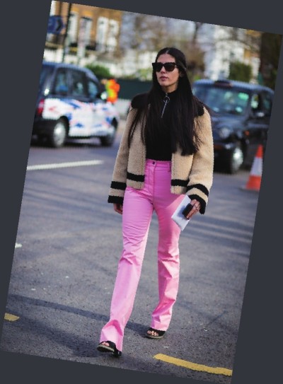粉红色的裤子搭配羊羔绒,一下子减龄不少。