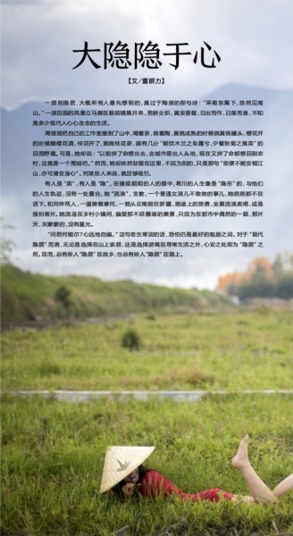 一提到隐居,大概所有人最先想到的,莫过于陶潜的那句诗:“采菊东篱下,悠然见南山。”一派田园的风景立马就在眼前铺展开来,男耕女织,黄发垂髫,日出而作,日落而息,不知是多少现代人心心念念的生活。 周猎猎把自己的工作室搬到了山中,喝着茶,做着陶,黄桃成熟的时候做黄桃罐头,樱花开的时候酿樱花酒,桂花开了,就做桂花茶,颇有几分“朝饮木兰之坠露兮,夕餐秋菊之落英”的田园野趣。可是,她却说:“以前拼了命想出去,去城市里出人头地,现在又拼了命都想回到农村,这就是一个围城吧。”然而,她却依然驻留在这里,不因为别的,只是那句“即便不能安顿江山,亦可清安身心”。对某些人来说,就足够吸引。 有人是“居”,有人是“隐”。在循规蹈矩的人的眼中,希川的人生像是“隐形”的,与他们的人生轨迹,没有一处重合。她“流浪”、支教,一个普通女孩儿不敢做的事儿,她统统都不在话下。和同伴两人,一道骑着摩托,一路从云南前往新疆,路途上的旅费,全靠流浪卖唱,或是接拍客片。她流连在乡村小镇间,偏爱那不经雕琢的美景,只因为在都市中偶然的一眼,那片天,灰蒙蒙的,没有星光。 “问君何能尔?心远地自偏。”这句老生常谈的话,恐怕仍是最好的勉励之词。对于“现代隐居”而言,无论是选择在山上索居,还是选择游离在寻常生活之外,心安之处即为“隐居”之所。因而,总有些人“隐居”在故乡,也总有些人“隐居”在路上。