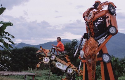 A:有一张照片,是一个小朋友爬在一个类似于变形金刚的艺术物上。我很喜欢那张照片,让我想起我的童年。我小时候,去奶奶家里,只要和奶奶说“我出去玩儿啦”,奶奶就回答“你去吧”。然后我就和我的小伙伴一起出去,漫山遍野地跑,三五个小时都不回家。那时候,通常是去河边玩耍,或者去抓蛐蛐儿、抓蛇。当时的状态就和照片中的孩子一样,懵懵懂懂的,但是又很贪玩。