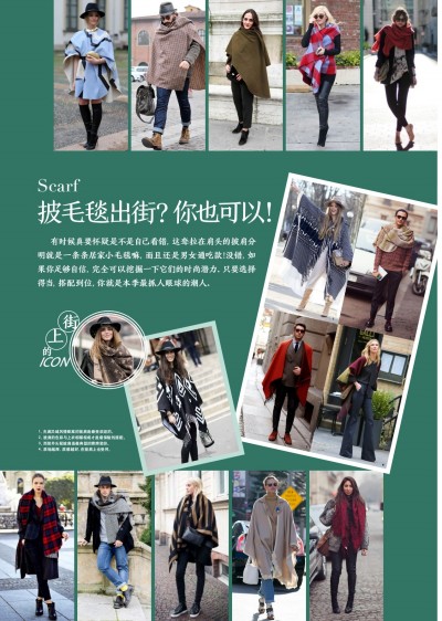 披肩的色彩与上衣相辅相成才是最保险的搭配。