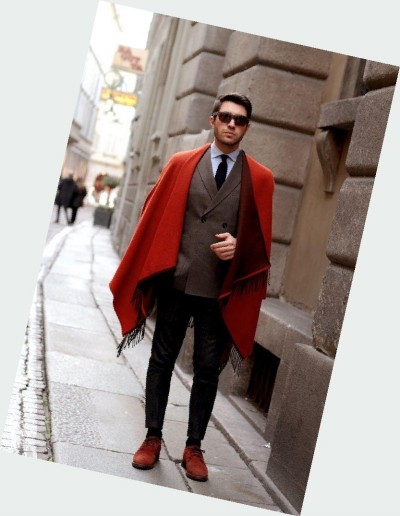 西装外头配披肩是最典型的雅痞装扮。