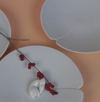 你若细读,许多的饮食器具间,皆有一首雅致婉转的诗。流畅的曲线外形,加之素白的骨瓷工艺,《琵琶行》中“大珠小珠落玉盘”的清脆之声,好像通过设计师之手,便能倾听几分。以琵琶为形,采用3D打印技术作为模种,使用高压注浆工艺,整个果盘形状温润,白皙无瑕,有“犹抱琵琶半遮面”的朦胧与谦和。