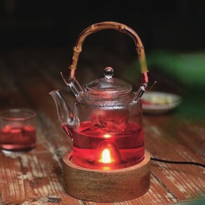 利用壶的底部空间,放入了一盏小灯,加之提梁的壶把,整个茶壶的形状,像是一盏明亮的提梁夜灯。在风雪的夜归途中,总有一处名为家的地方,为你亮灯,是为归宿。