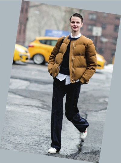 想来点中性风?用宽松长裤搭廓型羽绒服就可以轻松做到。