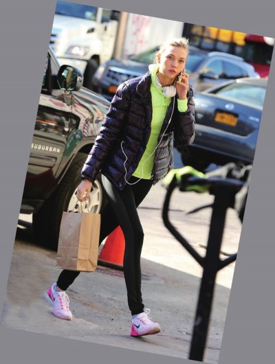 用帽衫和鞋子上的荧光色吸引眼球,让整个look更加出挑。
