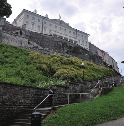 塔林上城的坐堂山,位于城市的石灰岩小山坡上,四周有坚固的城墙撑起。而位于坐堂山下的老城,四周有城墙和城门守护。历史上统治者在坐堂山上居住,与下方老城分开而治。如今是爱沙尼亚政府与国会所在地,以及各国使馆的官邸。这里的圣母教堂、东正教堂和托姆比亚城堡以及眺望老城的全景观望台,是山上最重要的景点。