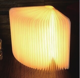 小灯做成书的形状,已经是出乎人的意料,更意料之外的是,这本“书”不仅能平放,还能折叠,甚至能够安放在墙面之上。这本“书”的“封面”是木质的,每一本“书”都拥有独一无二的纹路。