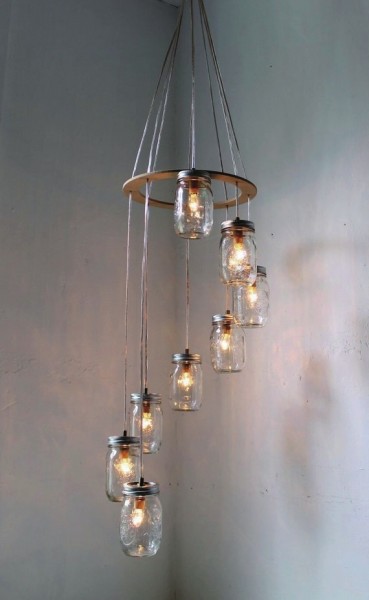 想要一盏与众不同,又合心意的小灯,最好的方式还是DIY。透光的材质是DIY一盏小灯的首选,譬如在玻璃罐中放上小灯泡,随后将几个玻璃罐像风铃一般组合在一起,竟也能营造出一种时尚简约的氛围。也有将玻璃酒瓶变身为DIY对象的,喷漆、悬挂、修饰,玻璃酒瓶蜕变成了时尚灯具。