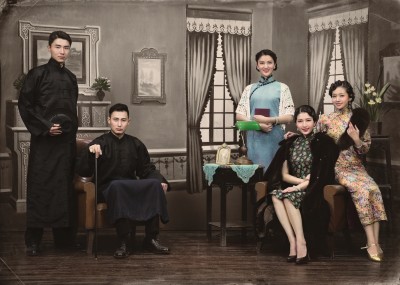 换上长衫,穿好旗袍,效仿一张被尘封的老照片,用现代人的面孔去还原它,一家人在绘制而成的古朴背景前端坐、微笑……刘烨曾发在微博上的复古全家福至今还让人津津乐道,林依轮、董璇也纷纷偕同全家穿上旧式华服,“穿越”回老照相馆,惊艳了众人。 这些明星的复古全家福还都出自同一家照相馆。这家名叫“白夜”的复古照相馆,简直成了星店,而且都是明星自己主动找上门去的。