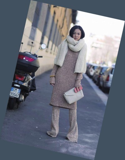 毛衣裙与毛裤相搭配,很出范儿,但不是瘦子的话就不要尝试了!