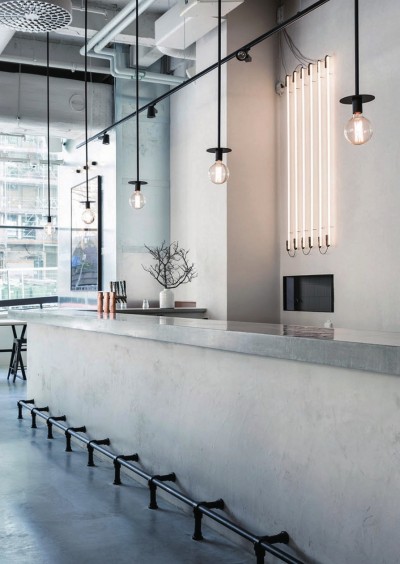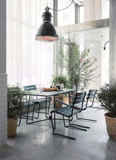 毛胚房里增添一面红色的砖墙,精装修房中增添几根裸露的铁柱,这是不是你印象中该有的工业风?工业风和老式的房屋最般配,比如老旧的餐厅、原有的仓库或者废弃的工厂。足够高大敞亮的空间,更有利于这种风格散发出粗犷、神秘的气息,让很多现代人为之深深着迷。这种略显粗糙,同时又蕴含别样精致和温柔的风格在设计师Richard手下更加变幻莫测,刚柔并济的工业风总能颠覆人们的想象与喜好。 简约里的温暖 这是斯德哥尔摩的Usine餐厅,前身是一家香肠制造厂,现在摇身一变成了法式餐厅。但设计师并没有按照人们想象中的法式浪漫风格去营造一种温馨的用餐环境。相反,在保留了工厂基本框架的基础上,将餐厅打造成具有瑞典风格,冷感却又不失优雅的整体空间。 设计师Richard说自己的家乡瑞典总是给人一种冷冰冰的基调,因此需要用一些丰富的素材来点缀整个空间。很多灵感来自阿姆斯特丹、立陶宛等充满活力的城市,神秘莫测的工业风结合了多种元素,达到一种更加和谐的效果。设计师将原本的天花板拆除,露出了工厂原有的结构和剩余的装置,裸露的管道变成挑高的屋顶的装饰。Richard还将金属扩展网切成小块,喷涂成黑色,装饰在灰色的墙面上,为金属基调打下了伏笔。来自各个国家的装饰物被安置在金属网格上,丰富多变的装饰品让餐厅更加灵动。 整个空间使用了混凝土,为餐厅定下了冷感的工业风基调。但考虑到很少有人会热衷于在清冷的空间中用餐,设计师为了调和气氛,在细节之处大胆用色,绿色的植物、白色的瓷砖、原木色的餐桌、黑色的铁器等等。既保持了简约、淡雅的一面,又在暖色光源的衬托下使得工业风的餐厅也有温柔的感觉。 入口处的无花果树在冬天来临之时,灰色的表皮成为餐厅另一种独特的景致,周围辅以橄榄树相互修饰,让空间每个位置都散发着生机与活跃。 粗糙里的温柔 这间充满粗糙的原始气息Nazdrowje,同样是Richard操刀设计的。对于颓废工业风有点迷恋的Richard这次同样改造了不一样的餐厅。这家以波兰菜系为主的餐厅,设计师造访了很多波兰工厂来找寻设计灵感。选用一些粗糙的材质,例如钢材或者混凝土来装饰整个餐饮空间,这些材质的运用不仅仅提供了一种工业风的硬朗,同时也能带给人们很多温柔的回忆。旧灯具和蒸汽管成为了整个空间的主要元素,餐厅的墙体、地面甚至是桌子以及部分的座位都是用大片灰白色的混凝土构建而成。没有修饰的原材料上一道道显眼的裂痕都能清晰可见,不平整的凹凸质地带点粗糙的温柔感。银灰色的椅子同样遵循了工业风中不可缺少的金属元素。餐厅大堂、洗手间以及吧台的部分墙面上都贴有粉色的小格瓷砖,不修边幅地展示在人们的面前,但在视觉享受上与整体的餐厅风格形成一种无形的和谐感。 餐厅天花板的设计是整个空间的一大特色,蒸汽管和灯具大量运用到天花板上。铜色的蒸汽管以及钨丝灯泡散发出的柔和灯光,把混凝土色带来的清冷感觉逐一驱散。如果说天花板是少有人关注的地方,那么餐厅最显眼的一定是吧台位置的金属板酒架。在瓷砖墙的映衬下,各式各样的酒瓶整齐划一放在架子上,各种颜色的酒瓶修饰了整个单调的纯色空间。夸张的大吊灯和灯管上泛起的铁锈无疑为整个工业风空间添上浓墨重彩的一笔。 简约中带着低调、粗糙中泛着温暖,这样的工业感觉使建筑本身焕然一新。它就像一个不羁的男子,在每一个弹指一挥间都散发出颓废怀旧所带来的独特魅力,性感而神秘,老旧又摩登。