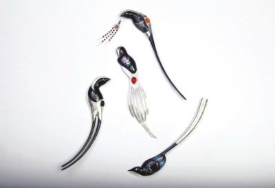 《钗头凤》通过对宋代花鸟画作中经典元素的研究提取,将中国古代最基本的四种女性发饰形制——簪、钗、步摇、栉融合在设计中,并综合运用木工艺、漆艺、金属工艺,用当代首饰语言重新诠释宋代花鸟图案,崇尚自然、重写生,情趣盎然。