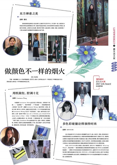 设计师品牌XINYUHU的设计师胡馨予出生于上海,以前卫、舒适、简洁的设计风格受到学院以及业界媒体关注。保留传统男装的精致与细节,优雅与个性,将掺和古典绅士味道与现代休闲男士风度的设计融入男性日常穿着,更好地展现出现代社会男性对时装穿着的态度和需求。专注于人体艺术、体态等运动的捕捉,运用大面积几何色块、条纹与多种新鲜色彩,混搭出具有时代特色的XINYUHU男性风格。