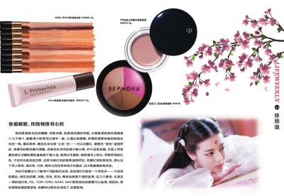 春暖花开“桃花妆” 还记得“十里桃林”的美景吗?正所谓“人面桃花相映红”,无论是桃花盛开的季节,还是婉约、古典的桃花妆容,都给人如沐春风的感觉,用一个字来形容:暖。这,便是桃花妆的精髓所在。 在考虑腮红、眼影、眉妆这些桃花妆“必备”要素之前,不可忽略的恰是最基础的底妆部分。底妆若是太白、太暗、太厚,那这桃花妆必是失败的。“人面”和“桃花”如何才能“相映红”呢?千万别跟粉底液去较劲,产品是死的,要“侍奉”千千万万人;人才是活的,粗糙、黯沉、无光泽的皮肤,可在粉底液前增加一步,使用妆前乳,用以平滑肌肤、修正肤色;或者挑选一款有护肤(主要是抗氧化)效果的粉底液,它具备抑制皮脂过度氧化的功效,既能长久滋润、贴合,又能避免过了三小时后底妆(脸)泛黄。当下流行的“素颜霜”也能很好地提亮肤色,甚至有控油、抗氧化的护肤效果,只是“素颜霜”一般都没有颜色选择,如果皮肤跟它色差较大,建议一直擦到脖子。日系底妆中的调光散粉也有此功效,尤为适合补妆时使用,通过调光粉末在自然光、室内光源折射的原理,来提亮肤色,如此,有仿若“素颜美”的底妆,就像个邻家姑娘一般,拥有了桃花妆的基础——“暖”。 桃花靓眼,以不变应万变 桃花眼不是人人都有,但桃花眼妆,却不管你是丹凤眼还是双眼皮都能描绘出来。诀窍有三:眼影、眼线和眉妆。但若你仔细观察热播剧中杨幂、迪丽热巴等人的桃花妆就会发现,她们从来不单独使用粉色、桃红色,在她们的妆容里,也是一眼看不出到底用的是什么颜色。妙就妙在这里,让人“暖心”的桃花妆,必然不是只留于外表和形式。 尤其在妆容聚焦的桃花眼,颜色要有变化,例如粉色、桃红色的眼影,要在搭配棕色眼线、闪金色眼影时,才会有对比。这也是这一季眼妆产品的大趋势,不一味使用同一色系的颜色,既有冲突感、又能相互糅合。同样的,眼线的描绘要根据每个人的性格、习惯、所处场合进行适当调整。剧中几位女主角的眼线忽而长、忽而短,也是在根据“凡人”、“上仙”、“上神”等几个不同“级别”的角色间相互调整。但大致上,桃花眼的眼线,可以稍稍往外画出去一点点,“野”和“暖”之间的度,可以由你自己把握。 俊眉略唇,抑扬顿挫有心机 桃花眼是桃花妆的精髓,而桃花眉,则是桃花眼的神韵。古装剧里的桃花眉倒是八九不离十,就像用小楷笔写正楷字一般,从眉头到眉尾,有着抑扬顿挫般的细细长长的一笔。看似简单,美妆处却也有“心机”在——可以与腮红、眼影的“桃色”遥相呼应,将眉毛的颜色略作调整。但桃花妆讲究的是宁静之美,并不适宜染眉。市面上带有颜色修正功能的眉粉盒就是不错之选,使用红色眉粉,微微眉毛上轻扫,若隐若现的红色,不但衬出皮肤的白皙,还将与桃红色的眼影遥相呼应。若腮红用的是粉色,那么由下至上粉色、桃红色、红色,隐约之间还有些层次与递进,这才是最美的桃花妆。 当你仔细看过几个略有不同的桃花妆后,会发现它们竟有一个共同点——不抢戏的唇妆。桃花妆的唇,当隐。杏色、驼色、裸粉色都是不错的选择,这几个颜色,也是这一季的流行色,YSL、TOM FORD、NARS、MAC都有类似的唇膏可以选择。相反的,那些高饱和度的艳丽色,则瞬间让桃花妆变俗了,实数败笔。