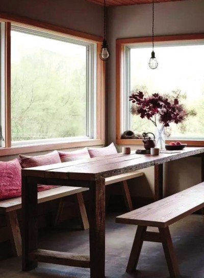 梦想中的家,不用面朝大海,春暖花开。它可能只是一座透着杉木香的小房子,屋内点着暖暖的光,偶尔好友前来,有笑语盈屋。梦想中的家,不用车马喧嚣,豪宅宴席,只要能够修篱种菊,晴天阳光照耀,雨天遮蔽风雨。梦想中的家,不用高朋满座,气派辉煌,它只要能容纳下你和我的心。每个人,都渴望拥有它,梦想中的家。 纽约 木工、陶艺的农舍 Kelli Cain 和 Brian Crabtree 是在大学就相识的一对夫妇,一直梦想着有一个自己的房子。终于,他们在纽约州北部买了这间100多年历史的两层农舍,并爱上了这片有着开阔的田野、苹果园和大片森林的土地。在这里,他们携手创作了梦想中的家。 基于设计和经济的原因,这个房子几乎是夫妻俩大量采用回收的材料自己动手改造的。进门处右手边的半圆形壁炉,下方的矩形空间堆叠着木柴,作为装饰墙体之用,质朴大方。左转,这个通透的空间是房子的心脏——起居室。起居室以实木色调为主,三人的深棕皮质沙发上点缀着白色和灰色的布艺、毛毡。钢结构的茶几是矩形的,呼应了整个方正的起居室空间。 移开起居室右侧,旧木板做的谷仓门,就是Cain的陶瓷工作室,这灵活的隔断使得工作室保证开放结构的同时,也自然地将工作从生活中隔离开。大大的木质工作台是动画专业出身的Cain静心创作的地方。为了节省空间,Crabtree在工作台的背后做了这个螺旋楼梯,旁边的货架则是自己买铁管做的,并且层板高度可调节,非常适合Cain的工作需要。 上到二层,映入眼帘的是极具乡村情调的厨房。厨房里的木饰面也都是回收材料,灰色板是原来谷仓的天花板,而其余木材是其他房屋拆迁的废弃木料,从新拼接、打磨、上油,都由房子的主人一手操办,非常环保又极具匠心。或陶瓷或铁质的餐具、炊具看似不经意地与水果和蔬菜摆放在一起,那和谐又深沉的样子却撩拨了食客的心。用铁绿色的瓷碗端着鲜艳的红苹果,惬意地步入阳光普照的餐厅。这里是Cain最喜欢的角落,大大的两扇窗外是果园的美景。 这个以木艺和陶艺为主的两层农舍,彰显了夫妻俩质朴、真实的生活态度。这就是Crabtree 和Cain亲手打造的家,梦想中的家。 莫干山 青山绿水来相伴 而在中国莫干山也有这样一栋质朴的民房,它门前是一条小溪,背后是漫山竹林,这里是中国设计师余味夫妇的家“云溪上”。当梦想中的家终于落成,望着竹翠拥簇中的“云溪上”,夫妇俩难掩内心的激动之情。 一楼是挑高的客厅,有壁炉,适合围炉夜话。客厅里充满艺术感的茶几是余味亲手做的,把老房子的木头柱子截成相同的长度,木头打磨、上蜡,然后组合起来,上面再放一块比它大一些的玻璃。夫妇俩还将原本院子里养鸡的一块地方,经过改造成了阳光房,阳光穿过通透的玻璃屋顶和墙壁,悠闲地品尝美食和咖啡,希望时光再慢一些。他们青睐中国风的韵味,便把山里捡来的木条制成屏风,使得整个空间通透又不乏古典气息。 二楼设了间小书房,原木色的家具呼应大大的落地窗外的山间翠竹,显得别致又清雅,读书赏景两不误。“山里的空间就是用来浪费的”,于是设计好的8间房被改成了6间。男主人赋予每一间客房一个动听的名字,“映水”、“泛波”、“垂丝”、“避风”……都是京剧里面手势的名称。清晨,在这拥有180度视野的房间醒来,看着阳光从枝头洒落,目之所及,皆远山。为了与自然更和谐呼应,整体房间的风格配色以木色和白色为主,当阳光照在白墙和木质地板上,温暖和幸福在屋内升腾起来。房间外是极具特色的户外浴缸。在户外泡个热水澡,与树影鸟鸣为伴。大到房屋设计,小到桌椅摆件,都是余味和余太太亲手设计搭配,他们就像培育孩子一样,看着房子越来越好。 为了实现余太太的“花园梦”,“云溪上”到处可见花草绿植,将整个空间变得柔和又更富生机。绿意盎然的何止是空间,更是屋中人的心境。