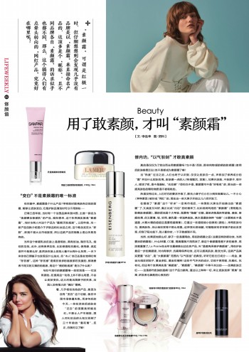 在瞄准了“素颜”这个“诉求”一定有市场后,一些国际大牌也开始推出的“素颜霜”了,又卖座又叫好,真正比试“内功”的时候来了。比如说阿玛尼的“素颜霜” (黑钥匙光影美肤修颜霜),霜的质地是个大考验,既要有“隐藏”功能,通俗讲就是自带滤镜、磨皮、修颜效果,但又要薄、轻、好用,像乳霜一样滋养皮肤。其次是霜的各种“功能”(主要其实不是遮盖,大颗大颗的痘痘还是要用遮瑕膏),它通过一些超级细小的微粒(颜色),来帮皮肤均匀、提亮肤色,且让细纹变得不那么明显。这种变化很细腻,可能刚涂完你在镜子前还没发现,但到了阳光底下,别人看你时,一下子就感到不同。