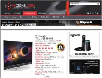 据悉,近日法国权威的第三方独立检测机构——AVCESAR对中国TCL旗舰级量子点电视XESS X1(法国同款机型U65S9906)进行了专业评测。结果显示,TCL 量子点电视XESS X1(法国同款机型U65S9906)斩获六星顶级评价(最高等级为六星),再一次向全球消费者展示了中国工业设计与科技创新的实力。 AVCESAR作为法国颇具影响力的第三方独立权威机构,一直以来被业界人士评为严苛的检测机构之一。在此次测试中,TCL量子点电视XESS X1(法国同款机型U65S9906)在画质表现、声音还原、外观设计、智能应用、视频处理等方面均获得了AVCESAR评测工程师们的顶级好评,6星顶级评价实至名归。