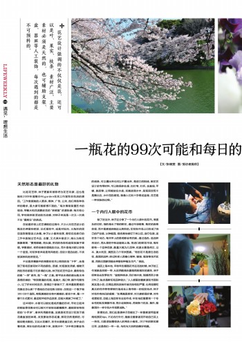 花艺设计强调的不仅仅是花,还可以是叶、果实、枝条,素材广泛。主要素材必须是天然的,也可辅助支架、盆、器皿等人工装饰,每次遇到的都是不可预料的。 天然形态是最好的礼物 比起花艺师,林子更喜欢被称呼为花艺玩家,这也是她在2009年底筹办NLgarden花艺工作室而非花店的原因。“工作室接触的人更多。媒体、广告、公关,他们有各种各样的需求,是大家可能都想不到的。”每次筹备装置艺术的现场,带着水和花泥要赶花的“新鲜度”的紧张感;每次和公司、学校做体验活动的互动感,对林子来说是一次又一次挑不出“最难忘”的挑战。 在给爱好者上花艺课程的过程中,不少人对花艺设计的概念仍停留在欧派、日式插花中,或是对纵向、三角形的固定造型套路谜之执着。林子从小喜欢绘画,曾经在拍卖行的工作中接触过艺术品、古董,又尤其中意设计,她认为做花就像画画:“要用眼睛、用头脑,把花的色彩和造型放脑子里想。学素描时,老师会教你透视的方法,而不是每次都让你练一个造型。对初学者来说是有风格的,但设计是自由的,不该被某种风格所固定。” 不论是奔着脑中的草图在花市上有目的地“下手”,还是到了现场反被花材不同的颜色、质感、长短激发灵感,植物天然的形态都是不可多得的礼物。林子的花艺作品中,最有特色的是“一萍”系列,取“一瓶”之意。那平淡无奇的蒜头瓶本来是想扔掉的:“特别普通的花瓶,底座大,瓶口窄,操作可能性小。过了好长时间没扔,觉得这个都做不了,将来遇到更难的花器还怎么做?于是给自己设定练习目标,仅用这一个瓶子做100-150个造型。有我满意的也有不满意的,都拍下来,看一下哪个方式更对,最后取99组作品发表,目前大概做了40组了。” 这40组中,水葱可以被处理成折叠的形状,平时立起来的郁金香花骨朵可以被片片轻轻地顺着展开,遇到某枝特别密的“小手球”,拿来利用最欢喜。这就是花艺设计区别于插花最直接的体现,改变原始形态或量,鲜花仍然是鲜的,可能却是无限的。又如大花蕙兰,在生长期是直立的,林子会沿着花茎,将左右的花朵摘下来,放到水中:“水中有泛着金色的线条,可以露出来也可以不露出来,是进口的铝线,做花艺设计的专用材料,可以做很多处理,如打弯、打折、走直线、平铺、跳跃等,让网能放在水底,花能放到水中,呈现固定而不是飘出去、水中花的感觉。就像人们玩十字绣或盆栽,花艺是一种实验的过程。” 一个内行人眼中的花市 除了技法外,林子还分享了一个内行人眼中的花市。常提及的切花,指的是去了根的鲜花,通过市场销售、购买的流程体现,而不是家庭自制这么简单的。切花在市场上已形成了自己的产业链,从种植园、栽培基地被切下来以后,进行包装,送往各个地方。每天早上的昆明都会有拍卖,通过选色、选品种来定价,再从昆明中转运输到上海。而进口的鲜花市场,每年都有一个品种目录,数量大概为几百种,花源主要是荷兰、日本、澳大利亚、美国及几个非洲国家。“有些花不是原生态的花,是园艺品种,经过科研人员精心育种、嫁接、栽培等技术实现,而我们国家目前还停留在种植及生产。”她说。 说回上海本地,早些年安顺路花市还在的时候,林子的工作室就选在那一带,从定西路到永嘉路再到现在的浦东,林子经常会去双季花市:“盆栽种类多,且价格不贵,到浦西至少贵20%了,缺点是鲜切花品种较少。”人人都爱的曹家渡花市面积其实是小的,且周边居民反映环境污染特别严重,也有说普陀真北的花市将有望被打造成全上海市统一的批发地点,林子对花市有自己的理解:“如果真是那样,对大家都是好事,对市场更规范,目前上海没有专业的市场,华东地区需要有一个专业性的批发集散市场,再分运到各地,再到各个花店、集市,能像国外一样令花卉市场更成熟。” 即便如此,我们还是请林子贡献出了一些曹家渡带逛指南和赏花tips,不论内行外行,随意去曹家渡花市给自己买上一束花,已是朋友圈很多人的常态小确幸。2017年的赏花期已至,这是我们一年一会,与花与大自然的美好相遇。 Qa 生活周刊×林子 Q:怎么会进入花艺设计这一领域的? A:我原来也是公司职员,毕业后的工作都很普通、日常。小时候学过美术,对艺术、设计一直特别喜欢,心里一直没放下。一次,先生在我生日时送了我一束花,发现之前接触的花怎么都被我忽略了。从那时开始就特别留意,关注电视、媒体、书、展览,跟以前学画画一样,一点一点学。 Q:想知道你怎么学的? A:通过图鉴。我刚学植物名称的时候,突然转行的陌生、困惑强烈,找不到规律性的东西。后来,比如我今天接触5种,我就把这5种的颜色、产地、基本特征、学名(有没有学名)、俗称(市场上的名字)找出来,通过表格记录。积累多了再去翻书,倒着来,草本、木本的都去关注。 Q:对现在的生活状态满意吗? A:希望和心气相关,做一些认为有价值的事情,不这么想的话我就去开店了,那不是我急需并且认为正确的方向。现在,除了一部分时间照顾孩子和工作室日常事务外,我每天规定自己什么时间学什么。只是做作品、帮别人布置,已经不是我的生活阶段了,我也不希望别人把我叫成花艺师。不一定要卖出去,我可以选择摆弄,不喜欢的我不做。我还喜欢家居、室内软装、色彩,没太多经营压力了以后希望自己对美的把握和表达进一步提高。花艺设