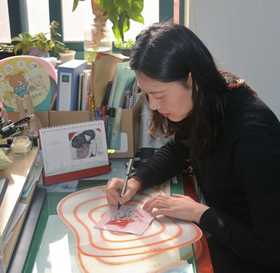 【文/冷梅 图/受访者提供】 记忆是一本书,被偷走之前总会被记录。而我的这本书里,都是我的画,记录随想和感悟的画 生活里一件小事 查斐佳的画,承载的载体非常与众不同。没人想见,小小一方餐巾纸,竟然成了妙笔生花的媒介。最开始的灵感,只因为轻松好实现。十年前,查查正忙着职称考试。某日,在一家咖啡店复习功课,闲来无事,便拿起了一张咖啡店的餐巾纸,即兴涂鸦,画画弄弄。 “餐巾纸的质地很柔软,具有晕染效果,用它绘画的感受和以往在纸张上的绘画手感完全不同。”查查的创作高峰期在2012年,那时她经常把自己的即兴创作,晒在朋友圈里。正是这样一个小小举动,得到了朋友的围观和赞许,因为分享而坚持下来,甚至于到后来朋友们都养成了帮她一起收集纸巾的习惯。朋友们去任何国家任何地方玩耍,都会在当地的咖啡店里带回不同质地、不同颜色,或者不同logo的方形纸巾。不小心,查查还因为这个爱好间接成了纸巾收集控。后来,查查的心情插画就固化到纸巾这一单一的载体之上,成为她的创作特色。 每次,查查都会在随手创作里,加上一两句心情随笔。文字和绘画的搭配,犹如心情记事本,记录着查查从少女时代日渐成熟的成长心情。 查查小时候就喜欢画画,但那时条件不允许,只参加了一些少年宫的特别绘画兴趣班,打了一点素描基础。她多年不碰画笔,反而在工作之余又重拾了小时候的爱好。 绘画的载体信手拈来,起先插画只有黑白色,使用水笔或小毛笔简单勾勒。到后面,她也会给这些作品上色。上色的颜料很随机,可以是剩下的咖啡沫,包里随身携带的口红、腮红、眼线笔、指甲油。 纸巾,通常具有不同质地,有些是一粒粒,具有粗糙的颗粒感,也有一些细腻光滑的质地。它的质地比宣纸厚一点,晕染效果且不像宣纸那么明显,但是比普通绘画的纸张又容易晕染。创作的时间越久,查查越能掌控这些不同质地的餐巾纸,画出她最想要的效果。 纸巾画办展 朋友圈的晒图,让查查渐渐有了名气,2014年她被辖区街道邀请,参加市民文化节,并开始各处巡展。查查很感激朋友的邀请,正是前后几次展览,她开始系统性地整理往期作品,把自己这些年陆陆续续创作的数百幅纸巾插画,整理成主题系列,并借此回顾往日的心情故事。 展览期间,正赶上马航飞机失事。于是,查查把一些悲伤的,具有情绪起伏的作品汇集成一个主题。单独的人物系列、节气系列分布成不同的主题,她还请来一些朋友专程为这些绘画系列撰写观后感。 有一天,一个住在附近的老奶奶带着孙女来观展,看到后面,眼眶湿润,激动地拉着查查的手,赞许她的坚持。当时,查查不太方便去问这位奶奶为何这么激动,“或许,她不曾想过纸巾这样一个平凡的载体,也可以创作出不同风格的绘画作品。”往深里想,也或者老奶奶年轻时就一直热爱绘画,只是当年条件不甚理想,最终因为放弃所爱而抱憾。查查说,每个人可能都有一个爱画画的心,承载着童真和梦想;它也可能成为你描述世界的一种状态,一个载体。 朋友们看到查查每天在朋友圈里晒画,不觉惊奇。而真正来到查查的画展时,立刻惊艳到了。想不到她的画能够填满整个房间。十年,对于查查来说,是一个不长不短的时间轴。“坚持下去总会越来越好。”只做一件小事,哪怕它是再平凡的一件小事,经过日积月累也能给你焕然一新的感受。正所谓,水滴石穿,铁杵成针。查查说:“我不能说自己多么有成就感,但是当我看到自己1000多幅的作品时,心底会涌现出满足感。” 灵魂深处的探寻 那些表情孤独,环抱自己的大眼娃娃,是查查特别喜欢的画风,而朋友们常常从这种画风里,看到查查自己的影子;她们纷纷说大眼娃娃就是查查的写照。画风中,环抱着自己的是一个没有安全感的小姑娘,她的四周被密布的黑暗所笼罩,似乎让人透不过气来。 查查很陶醉于这种“灰色”心情的状态,潜藏着她那无意识的自我保护。它仿佛是更深层次的自我剖析,把掩藏在身体最深处的负能量、压抑的情绪还有不完美的自己,暴露于人前,让自己有所反思。“那些灰色的部分,也是自我的部分,画出来,就可以正视它!”查查解释道:一幅画可以有不同的解读。甚至于,你在不同的心境下,会看出属于自己的不同的情绪表达。它更像是人的两面,既有阳光的一面,也有灰暗的一面。 查查只会在自己有心情的时候画画。她说,画画是特别主观和自我的部分;没有任何的“为赋新词强说愁”。她喜欢那些关于故事性的表达,情绪层次更丰富。在朋友圈里的晒图,查查不希望朋友们仅仅是来点个赞,她更希望大家能把自己的感受留言给她。“我想我看到的世界,一定和别人看到的世界不一样。借由这幅画,我就能看到别人的心境表达。了解个体间的与众不同。” 曾经有一幅纸巾绘画,同事看了之后,留言给查查,那个朋友想象出一个很长的童话故事。画里是一个树洞少女,树洞是黑白色的,只有躺在一旁的心脏是鲜红色的,醒目甚至有些扎眼。“也可能,在当时创作时,我只是随手一画,想到哪里画到哪里,并没有更多深层次的意识。但是别人或许能从我的画里读出关于我的更多内在部分。这个过程很有趣。”它似乎有点像心理学上常常使用”房树人“来解读人们潜藏在内心深处的个人部分。而绘画又仿佛是一个“树洞”,让别人了解自己,让自己了解自己,或多或少让它成为人与人之间情感