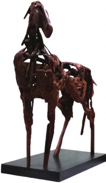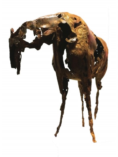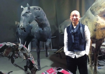 每当那些铁皮水桶、废铁片等“上新”时,雕塑家董斌总是第一时间前去“淘宝”,因为这些人们眼中的垃圾,对他来说可是雕塑创作的宝贝。 一匹铁马是怎样炼成的 董斌工作室里的雕塑马都是用废铁制成的,他用废铁做马,到现在已经有8个年头了。 之所以选择用废铁,董斌解释说,铁是生活中非常常见、却不受重视的材料,但这种材料刚强又朴实,“我个人比较喜欢用这种朴实、平常的材料来做出精神上高贵的作品,这是我的理想状态。而且我选的还是废铁,因为这些老旧的废弃物其实是有记忆有灵气的,我回收来用于新的创作,就是希望能让它们的生命延续。” 说起对铁的喜爱,这还要追溯到董斌的童年记忆。除了对铁皮玩具情有独钟之外,小时候,董斌住在北京老胡同里,附近有个制罐厂,他总是和小伙伴们跑去捡些铁皮片玩,或是拿去和同学交换。他还特别喜欢听倾倒罐头的声音,那种“哗啦哗啦”的巨响,在董斌耳朵里却像铜管乐般悦耳。这段记忆让他现在想起来也非常有感触。 包括现在制作雕塑的时候,董斌依然非常喜欢铁皮敲击的声音,除了自己会“叮叮当当”地敲,或者是拿脚踩,甚至还会从工作室二楼将铁皮往下扔,令其形成自然撞击的瘢痕,“这些都是来自童年回忆对我的影响,非常本真的表达。” 董斌从小就喜欢骑马,现在有空也会开车去北京近郊的草原上待个一天半天,观察马儿奔跑时的样子,通过骑马,可以更直观了解马儿的体形和肌肉感。8年时间里,他已经做了近90件关于马的作品。他做的马,每一件都是孤品,风格各异的形态也寄托了他对马的喜爱之情。他还将铁马雕塑命名为“蜕变”系列,源于他对自然生态提出的思考,采用废铁为材料,通过切割、焊接、锻造进行创作。制作一匹等比例的马,一般需要3到6个月的时间。制作过程非常累,首先,每一块铁皮都需要经过长时间的敲打,使之符合该部位的形态,此外,还要进行打磨和着色处理。接下来,要通过电焊把这些零散的铁皮部件焊接在一起,“我做的时候一般是先做躯干,然后添加四肢,让它立起来。”制作过程还经常有反复,因为每加上一块新铁片,就会对雕塑整体产生新的影响,要不断去调整,使之达到理想效果。 有些“工作狂”的董斌往往是早9点开工一直到晚上10点才停歇,即便佩戴了完备的护具,长时间的电焊常常会烤得他脸上起皮,眼睛也会有晃眼的现象,需要两三天才能恢复。值得一提的是,董斌用来着色的“颜料”非常特别,他平时就喜欢收集雨水和工作室的尘土,有时候也会加入一些颜料混合,通过火的历练使其蜕变而再生,使材料更加生锈,产生一种朴实平静的感觉。他说,深厚、朴素,生命既是如此。有国画基础的董斌,在作品中还运用了中国水墨大写意手法,大量留白、空洞,像是太湖石隔空望景,让虚空间与实体空间对话,他希望体现出中国哲学精神。 废铁或许不美,但足够动人 虽然是废铁,依然是有挑选标准的。 董斌会挑有一定厚度的铁板但又不能太沉,“当我将铁皮焊接起来的时候,我希望能展现一种类似折纸的感觉,让坚硬的东西软化、脆化。”此外,他也会挑一些本身带有漆面的有色铁板,再对局部进行修补,但铁板的破损程度和锈斑都会尽可能保留,他希望尽量呈现铁板的原始状态。还有一种,是被机器挤压过的铁片也得到董斌的亲睐,“因为坚硬的东西再被外力挤压过,再进行释放,这种张力是无法做出来的。” 董斌还会特别收集一些带有特色花纹的铁片,有时候会将这种特别的图案加在马的脖子或脚腕上,有种纹身的感觉。 董斌觉得,现在的审美太过甜美了,而艺术有时候承载的不一定是美,也可以是痛苦、忧郁等,“我希望展现的是多方面的,这也是我选择铁的原因之一。”出了“蜕变”系列,董斌的“霓裳”和“城市”系列,也都是用废铁作为材料。“霓裳”系列,是用废铁做的服装雕塑,虽然物体只有衣服本身,但造型的律动感却像是穿在了人的身上一样灵动。而“城市”系列的作品为数不多,却极具特色。比如“天安门”的雕塑让人印象深刻,他用废铁做出的天安门城楼和大众眼中庄严肃穆的形象并不符合,但对董斌来说,那才是他记忆里的那座久经沧桑的老城,是经过董斌反复推敲而成的。 “作为艺术家,作品系列不必多,但需要无限的追求。”董斌常常会告诉自己“我们没有自己想象得那么好”来鞭策自己,未来他的作品系列也许不会增加,但每个系列都会不断精进。 董斌说,想做一件作品,一定是因为曾经被某件事物打动过,想用情感去打动别人。他会坚持用自己独特的表达方式,使被大家抛弃的废品得到另一种生命的延续,“废铁经过敲打和焊接进行再生,变成一件比我的生命更加长远的艺术品,并将一直延续下去。”