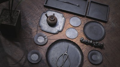 刚开始“造铁” 很困难,首先是难以找到合适的材料。铁制茶器所需的原材料都是特定铁片,经过雨水侵蚀有良好的肌理。遍访各地搜集来原料后,设计也要根据每一张老铁片的特质做出相应的形态调整。而在设计制作过程中,敲打定形要用到辅助工具。然而国内却无法买到合适的工具,只能在摸索实践的过程中,自己设计出合适的辅助工具。最后经过纯手工一锤一锤敲出定型,因此每一件器皿都是独一无二的。