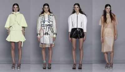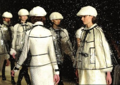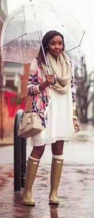 四月天,小孩的脸,时晴时雨便是常事。怎么才能搭配一套既能挡风遮雨,同时又能彰显时尚品位的服装,需要抓住雨天的几大要素。雨衣、雨靴、雨伞……设计师们既在雨具上添加时尚的要素,又在其中获得新的潮流,将雨具面料的质感用于时装设计之中。